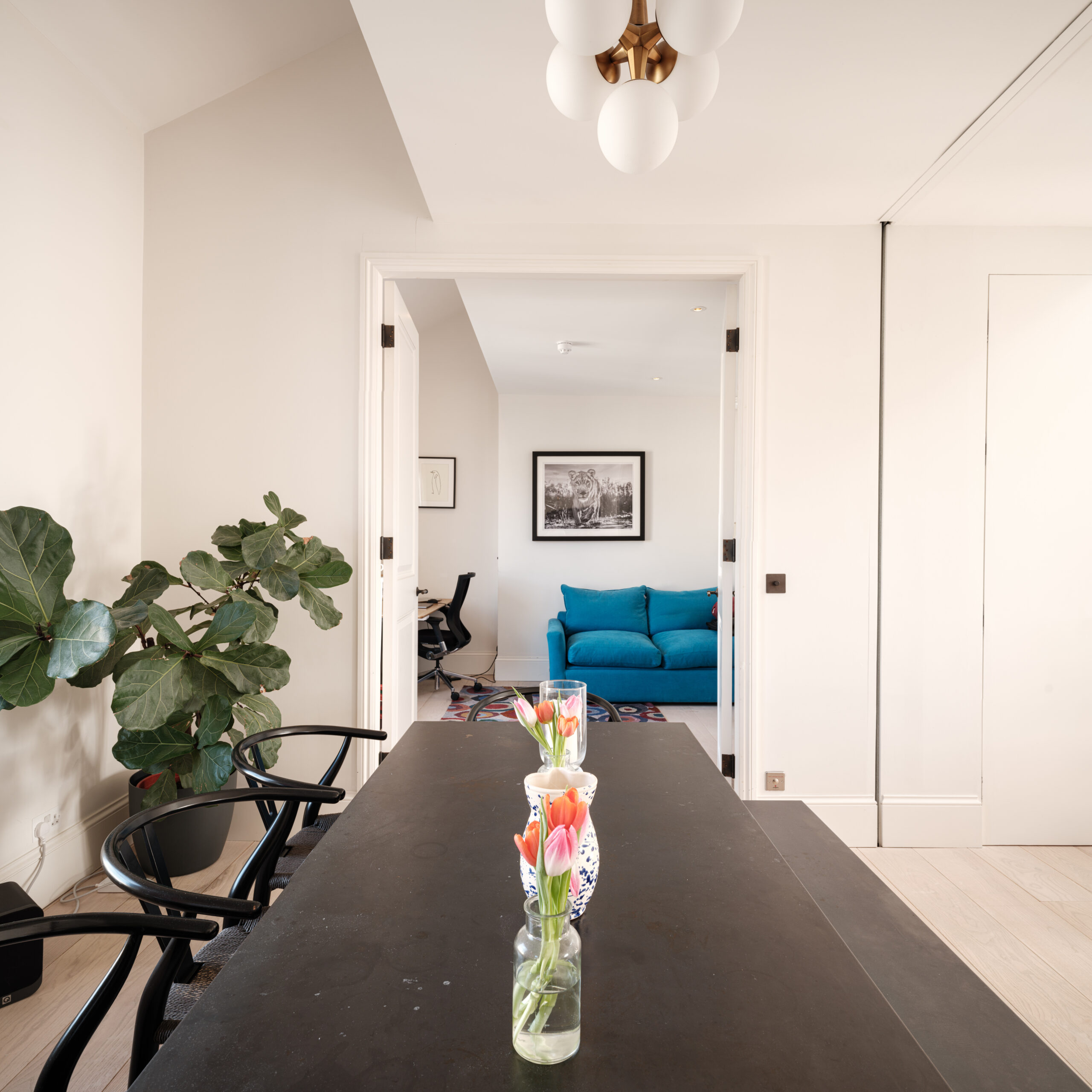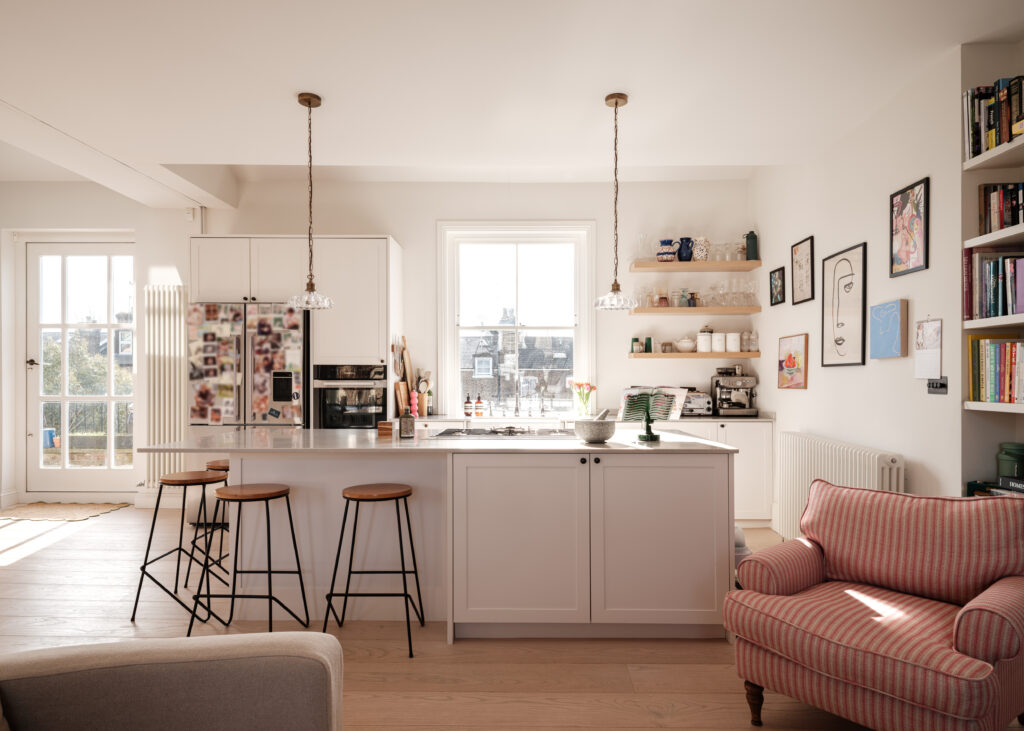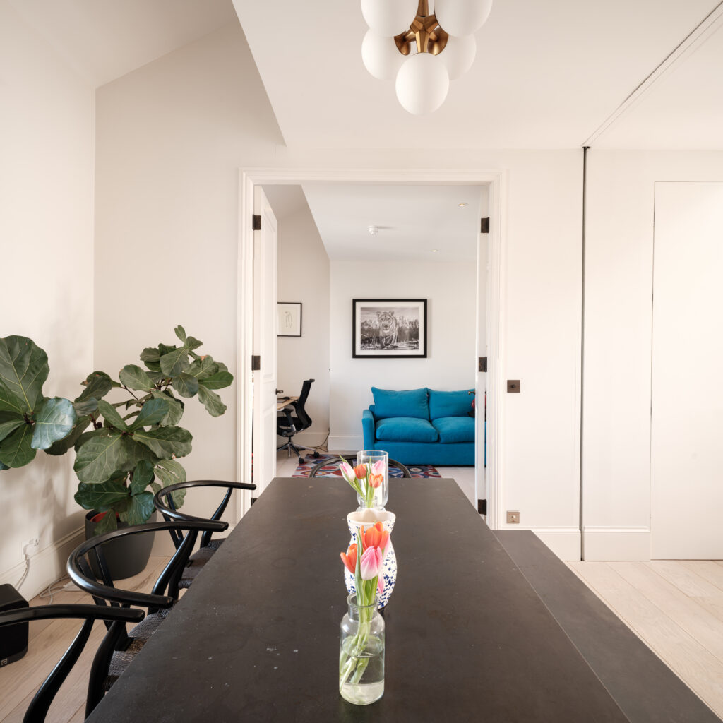 The heart of the property is a wonderful living space with an open-plan kitchen leading directly onto the terrace, creating an ideal setting for both everyday living and entertaining. This space offers great volume and amazing light, which continues throughout the flat. There is an extremely spacious master bedroom with air conditioning, complemented by two further bedrooms and bath/shower rooms.
